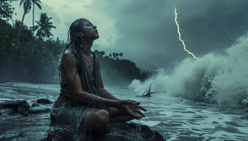 ![]() | One of the prompts I used was: “Year 1624, a pre-Hispanic priestess in the Philippines, summoning the elements by the sea, her hands raised while we see the waves crashing against a nearby peninsula, in the style of the movie 300—cinematic, dark, dramatic, high definition, realistic.” |
